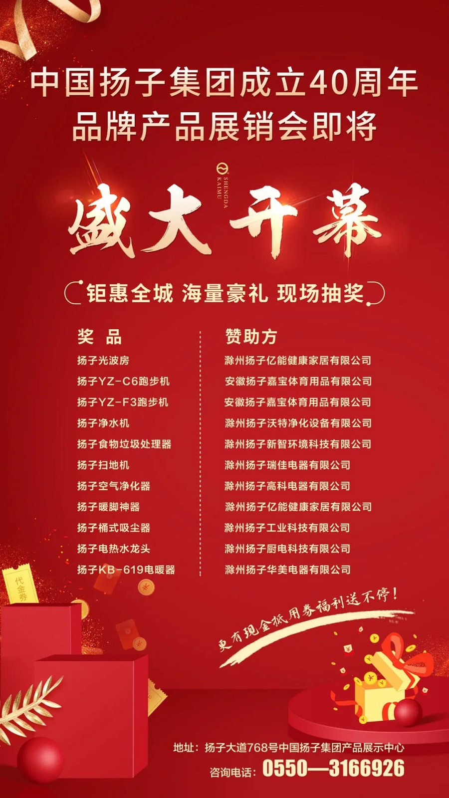 中國(guó)揚(yáng)子集團(tuán)成立40周年揚(yáng)子產(chǎn)品展銷會(huì)即將盛大開幕!