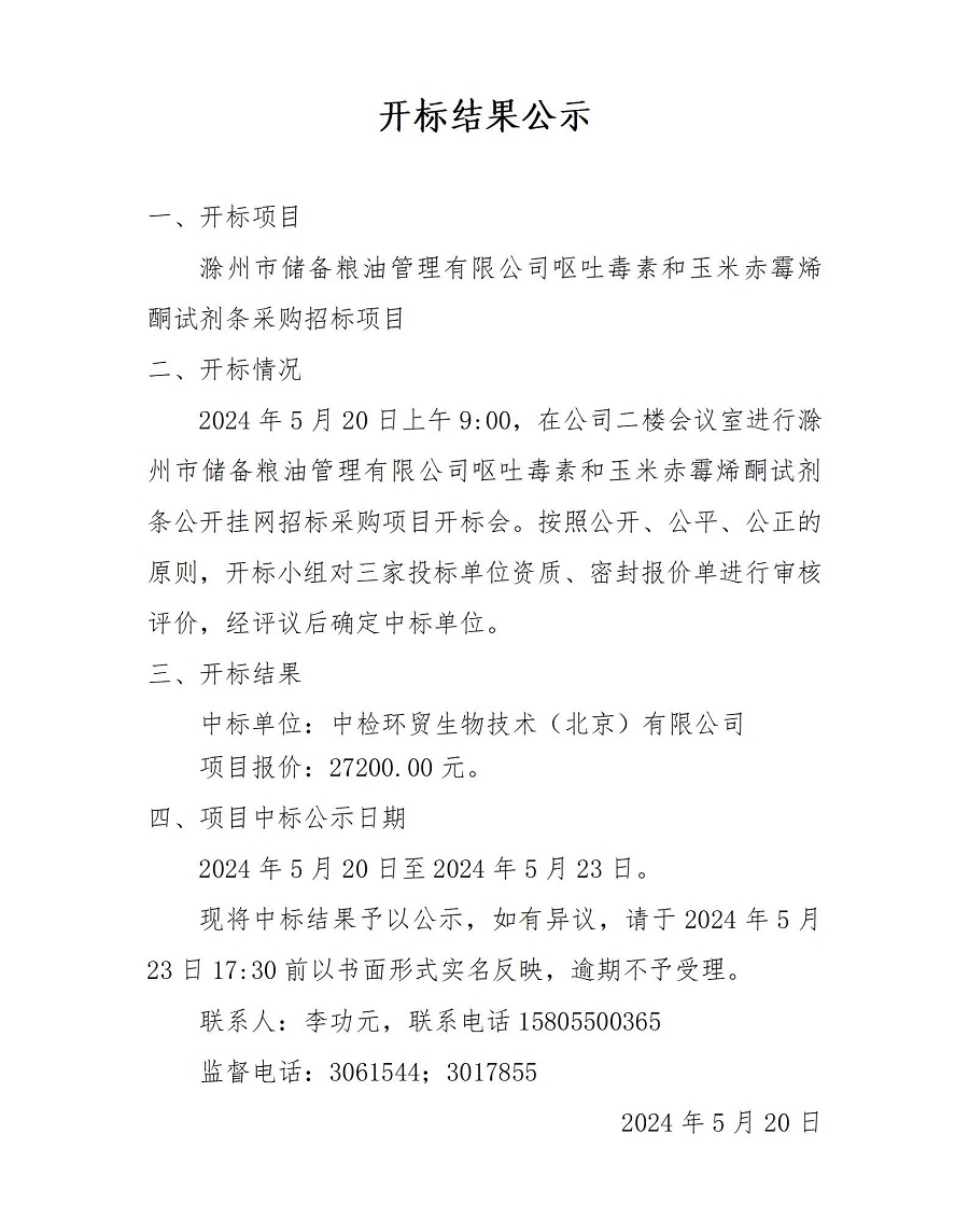 滁州市儲備糧油管理有限公司磷化鋁粉劑采購項目公開掛網招標公告滁州市儲備糧油管理有限公司現采用網上公開招標的方式確定磷化鋁粉劑供貨單位,歡迎各有能力企業積極參與報價,現將相關情況說明如下:一、采購內容及相關要求采購內容:磷化鋁粉劑85%二、資格要求企業參與報價,需提供企業法人營業執照、法定代表人授權